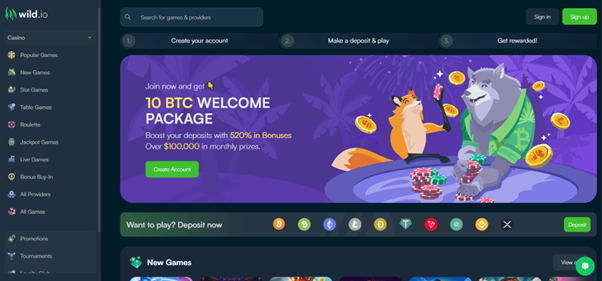 WILD.IO is a popular online crypto casino that provides players with an exceptional gaming experience. Wild.io offers a huge welcome bundle of up to 10BTC and 1400 free spins, this welcome package is spread over your first four deposits and is one of the biggest in the BTC betting industry. Additionally, the casino offers regular promotions such as reload bonuses, cashback offers, and free spins to keep players engaged and coming back for more. One of the unique features of Wild.io is its user-friendly interface, which makes it easy for players to navigate the site and find their favourite games. The crypto casino offers a wide iety of games, including slot machines, table games, and live dealer games. Some of the most popular slots at Wild.io include Book of Dead, Starburst, Gonzo’s Quest, and Wolf Gold. The casino also has an impressive selection of table games such as blackjack, roulette, and baccarat. The casino supports several payment options, including popular cryptocurrencies such as Bitcoin, Litecoin, and Ethereum. This allows players to BTC bet or alternatively bet with fiat. Wild.io is available in several languages, including English, German, French, and Russian, making it accessible to players from different parts of the world. 24/7 live chat is also available.