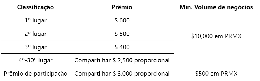 Todos os usuários qualificados com base no volume de negociação podem compartilhar $ 7.000 em PRMX.