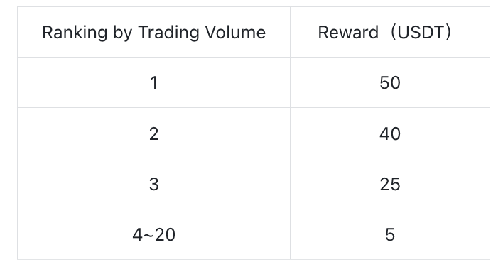 2.In Event 1, the minimum trading volume of Top 3 users must reach 150,000 USDT, and the minimum trading volume of Top 4~20 users must reach 17,000 USDT;