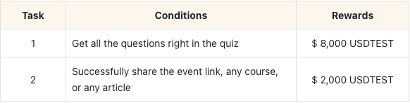 Tarefa 1: Aprenda com cursos e artigos específicos, inscreva-se e responda todas as perguntas do quiz de Halloween corretamente para dividir um prêmio de 8.000 USDTEST.