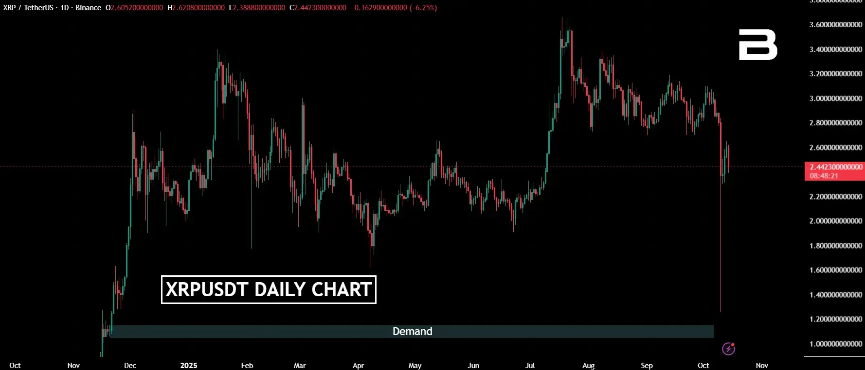 O XRP está agora a negociar cerca de $2,43, mas apenas há alguns dias, a 10 de outubro, caiu para $1,25.