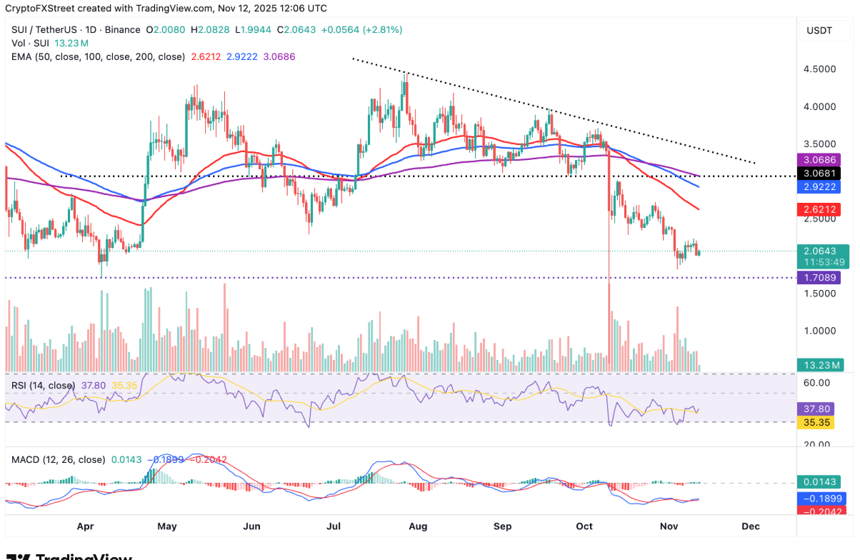 Do ponto de vista da análise técnica, Sui está tentando se manter negociando acima da marca de 2,00 USD na quinta-feira. O índice de força relativa (RSI) subiu ligeiramente para 37, indicando que a pressão de baixa está mostrando sinais de fraqueza.