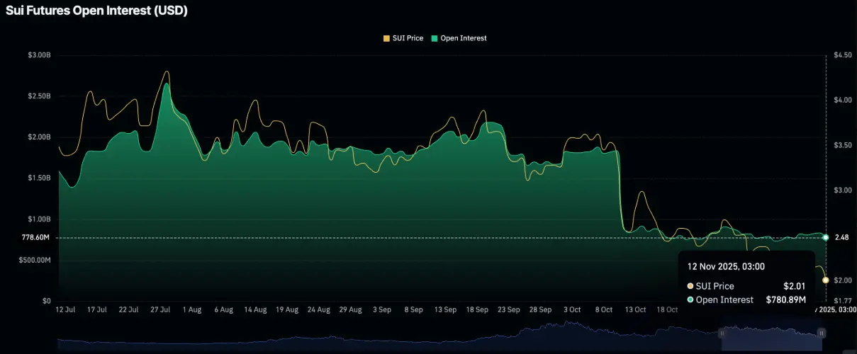 A situação no mercado de derivados também não é melhor: o volume de Contratos em aberto (OI) caiu para cerca de 781 milhões de USD na quinta-feira, de 835 milhões de USD na terça-feira e 1,84 bilhões de USD no dia 1/10. Para apoiar a recuperação do Sui, o OI precisa aumentar novamente de forma estável; caso contrário, a tendência de queda pode continuar e empurrar o preço abaixo da marca de 2,00 USD.
