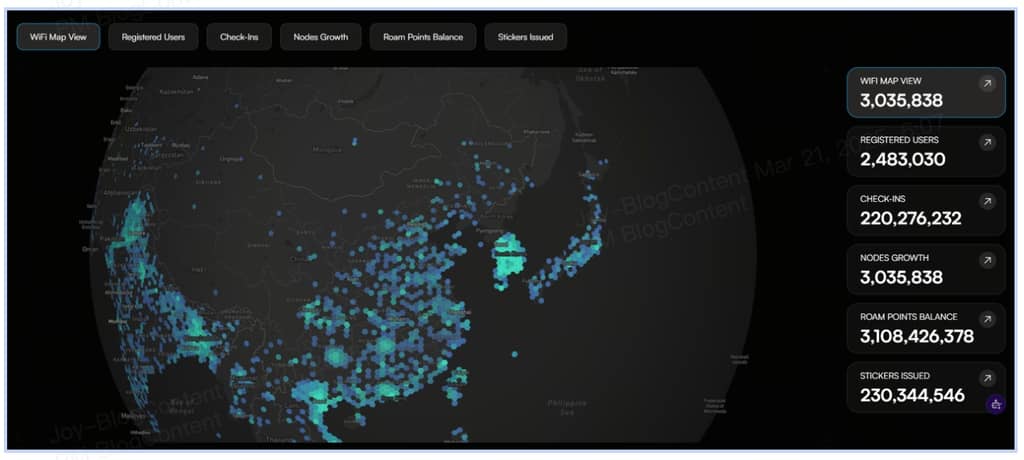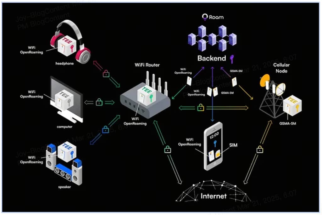 1. Expansão profunda da rede de nós global O plano Roam visa acelerar a implantação de nós através do modelo DePIN (Rede de Infraestrutura Física Descentralizada), com o objetivo de expandir os nós WiFi próprios de 700.000 atualmente para mais de 1.000.000 até 2025, cobrindo mais áreas remotas. Ao mesmo tempo, a otimização do protocolo OpenRoaming permitirá a troca sem interrupções entre redes, permitindo que os dispositivos dos usuários mudem de um hotspot para outro sem percepção, com um nível de criptografia de comunicação equivalente a redes privadas 5G. O desenvolvimento da camada de hardware L1 também será priorizado, visando oferecer suporte a conexões de baixa latência para computação de borda e dispositivos da Internet das Coisas.