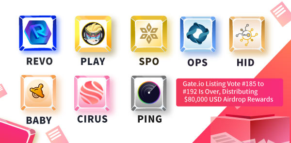 REVO, PLAY, SPO, OPS, BABY, CIRUS, PING и HID #Голосование за листинг# завершено, и эти токены были успешно добавлены на Gate. Мы вознаградили пользователей раздачей токенов, включили услуги торговли и вывода. Следите за обновлениями, чтобы узнать больше о голосовании: