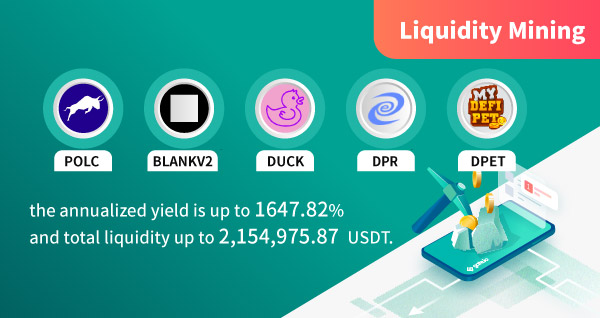 На Gate открыто 55 новых версий пулов для майнинга ликвидности (Automated Market Maker AMM), включая POLC, BLANKV2, DUCK, DPR и DPET. По состоянию на 15 сентября 2021 года годовая доходность составит до 1647,82%, а общая ликвидность - до 2 154 975,87 USDT.