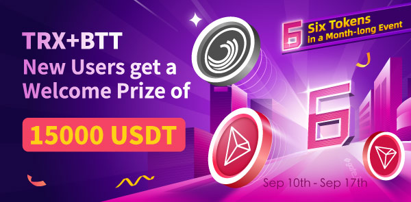 · С 10 по 17 сентября 2021 года Gate и TRON Eco: мероприятие продолжительностью в месяц (I): приветственные призы для новых пользователей TRX + BTT