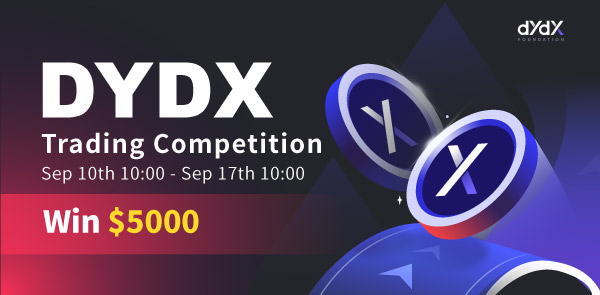 · С 10 по 17 сентября 2021 года торгуйте DYDX и выигрывайте бонус в размере $5 000.