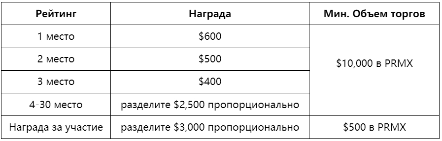 Все квалифицированные пользователи, исходя из объема торговли, могут разделить $7 000 в PRMX.