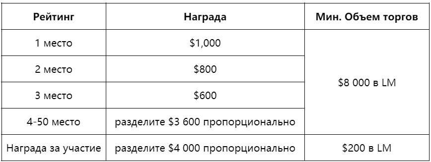 Все квалифицированные пользователи, исходя из объема торговли, могут разделить $10 000 в LM.