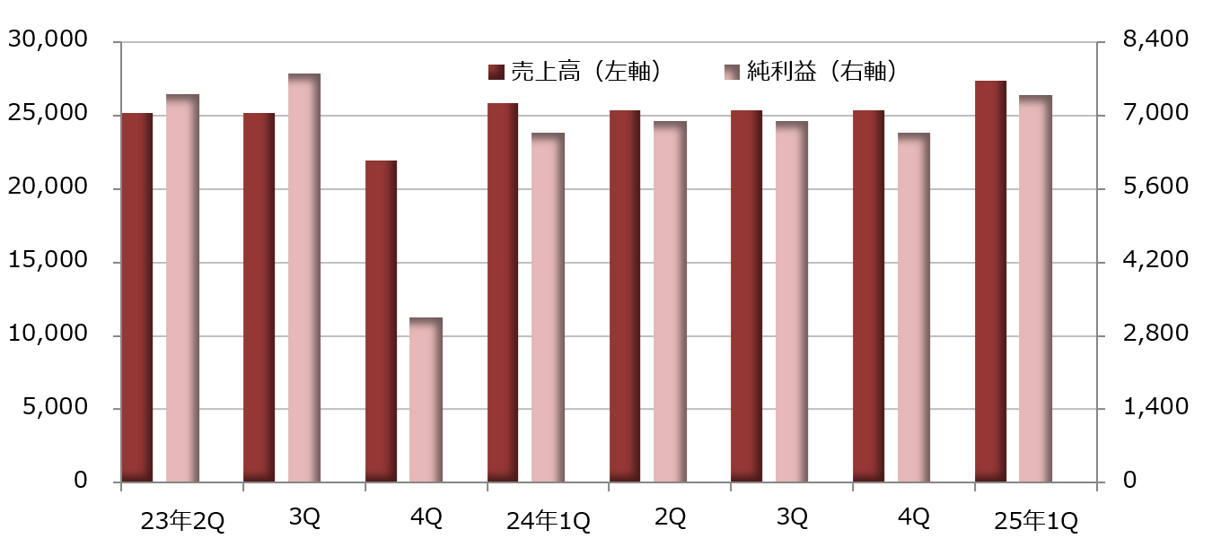 При небольшом увеличении выручки стоимость продаж увеличилась на 13,0% до 7,357 миллиардов долларов, что привело к ухудшению валовой прибыли, однако расходы на продажи и исследования и разработки были сдержаны, что расширило маржу. Кроме того, другие доходы составили 7,321 миллиард долларов (в прошлом году были расходы в 2,440 миллиарда долларов), что значительно увеличило конечную прибыль. Скорректированная чистая прибыль, исключая специальные факторы, увеличилась на 1,9% до 6,706 миллиардов долларов.