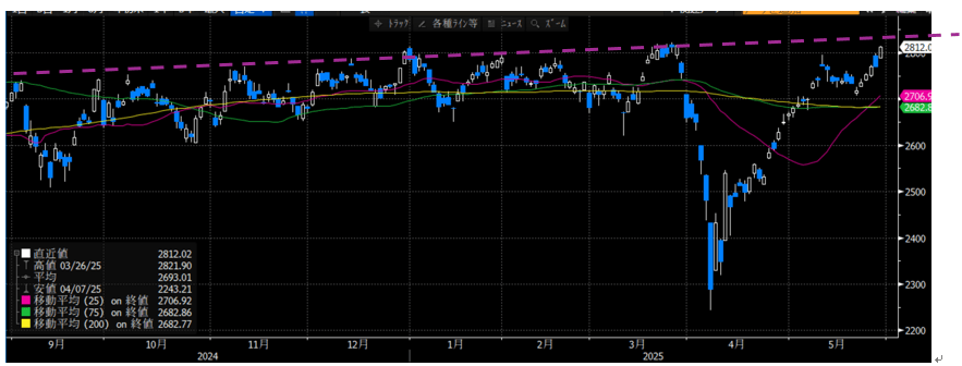 【Динамика индекс Никкей и скользящих средних (зеленый: 25 дней, желтый: 75 дней, оранжевый: 200 дней)】 ! Источник: сайт Monex Securities Смотря на это, можно сказать, что японские акции полностью преодолели влияние резкого падения цены из-за тарифов Трампа. Фоном к этому, как уже упоминалось ранее, является то, что начинают проявляться ограничения политики Трампа. Вчерашний значительный рост был вызван тем, что Международный торговый суд США постановил, что полное облагаемое налогом импортное производство выходит за рамки полномочий президента, и приостановил большую часть налогов, введенных президентом Трампом. Изначально мир был в смятении после объявления о слишком рискованной тарифной политике, но в конечном итоге стало основным мнением, что «всё утихнет».
