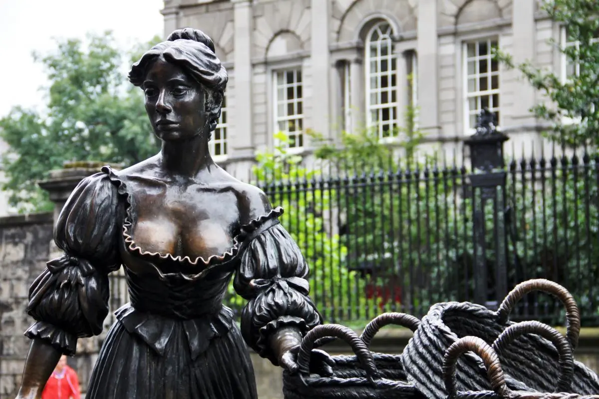 Бронзовый памятник Молли Малоун появился в честь празднования первого тысячелетия Дублина в 1987 году – на перекрестке улиц Графтон-стрит и Саффолк-стрит. Статуя в натуральный человеческий рост изображает молодую девушку в платье XVII века с глубоким декольте. Утверждается, что ее декольте настолько глубоко из-за того, что в те времена женщины публично вскармливали детей, и такое платье было для этого удобным.