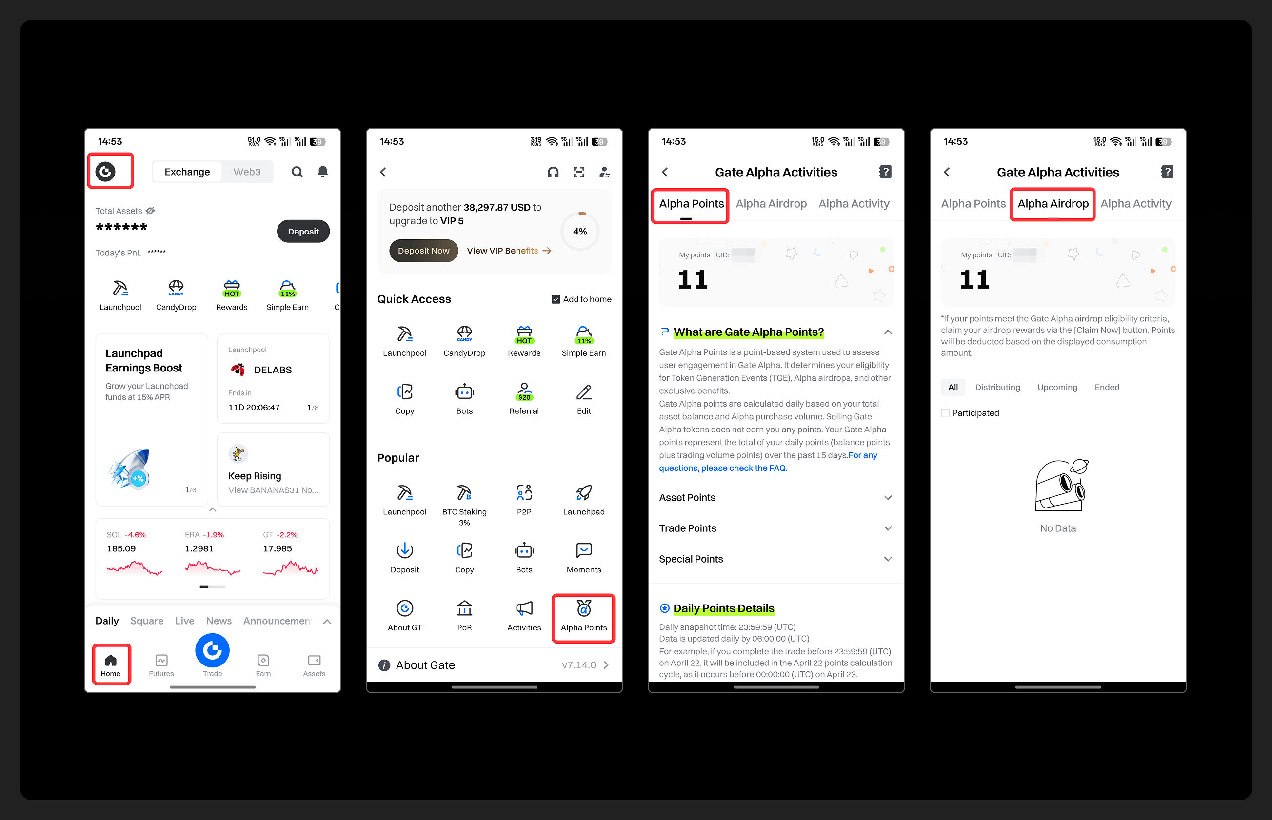 - Definition: Gate Alpha Points are an activity evaluation metric based on user behavior data (asset holdings, trading activity) on the Gate platform and within the Alpha ecosystem. The points value is the cumulative sum of daily points over the past 15 days.