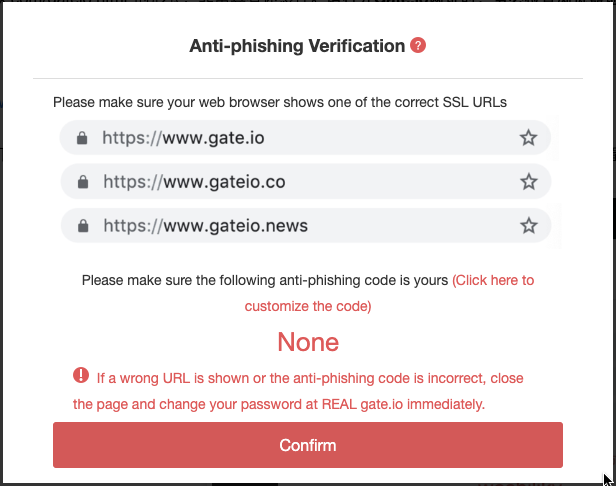 After logging in, the will provide an anti-phishing as below. Please check if the suggested anti-phishing code is the same as the one you set before. If you have not set the anti-phishing code, please fix it according to the login prompt.