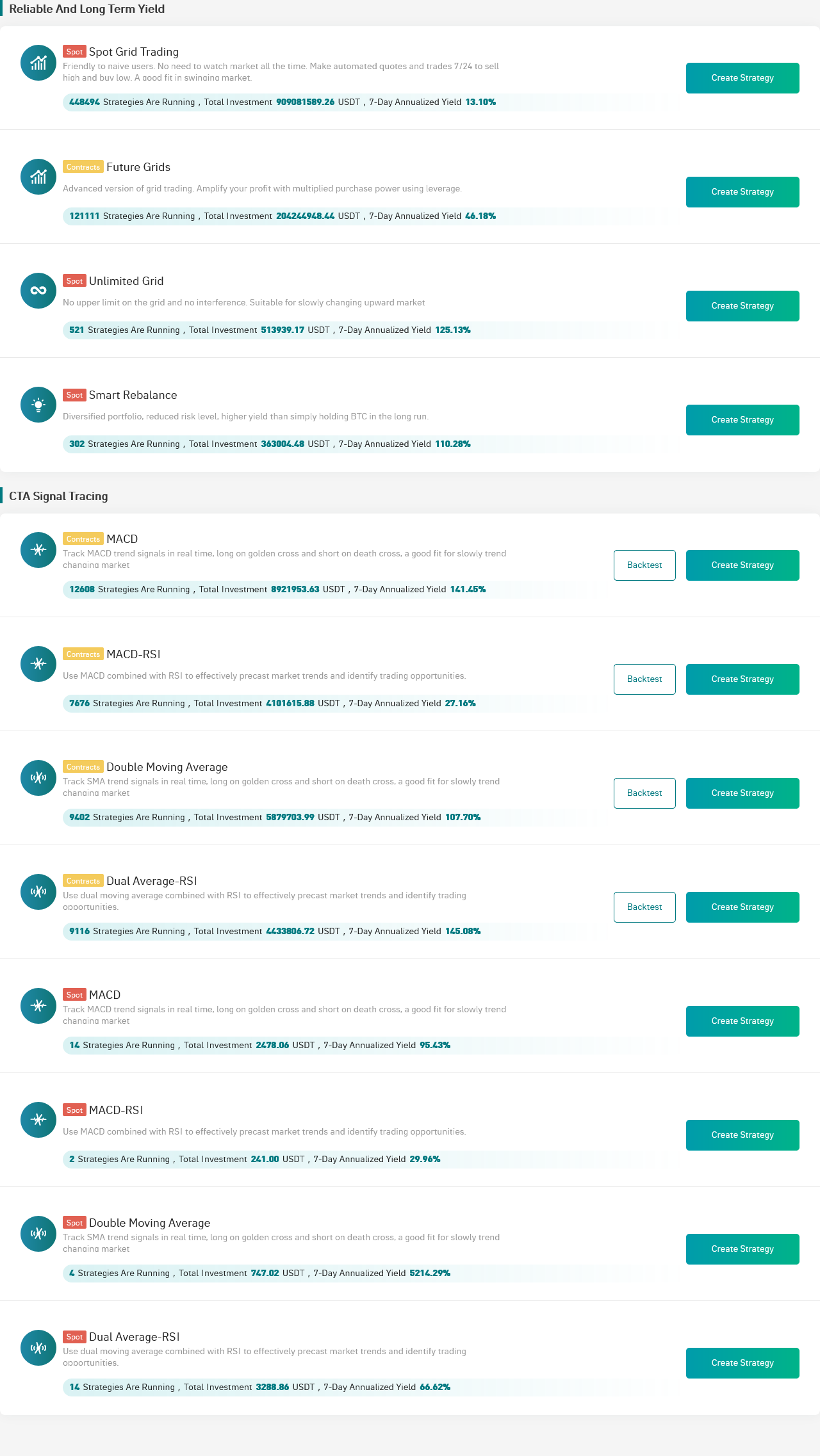 Users can view the performance of strategies created by other users in the leaderboard, and if they think a strategy has a better return than their own, they can copy the strategy's operating parameters to create an individualized version. All strategies are free to copy and 5% of the earnings will be returned to the signaller after the strategy is terminated.