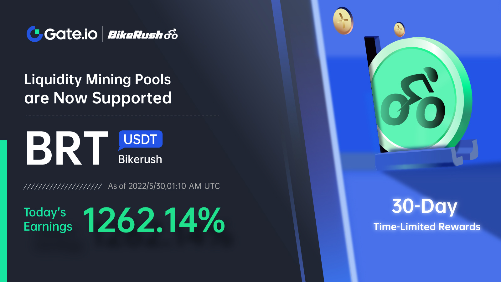 Liquidity mining pools (in Normal Trading Mode) for BRT/USDT trading pair is officially enabled on Gate. We also added an extra time-limited bonus of 35,223 BRT to it at on the 27th of may.