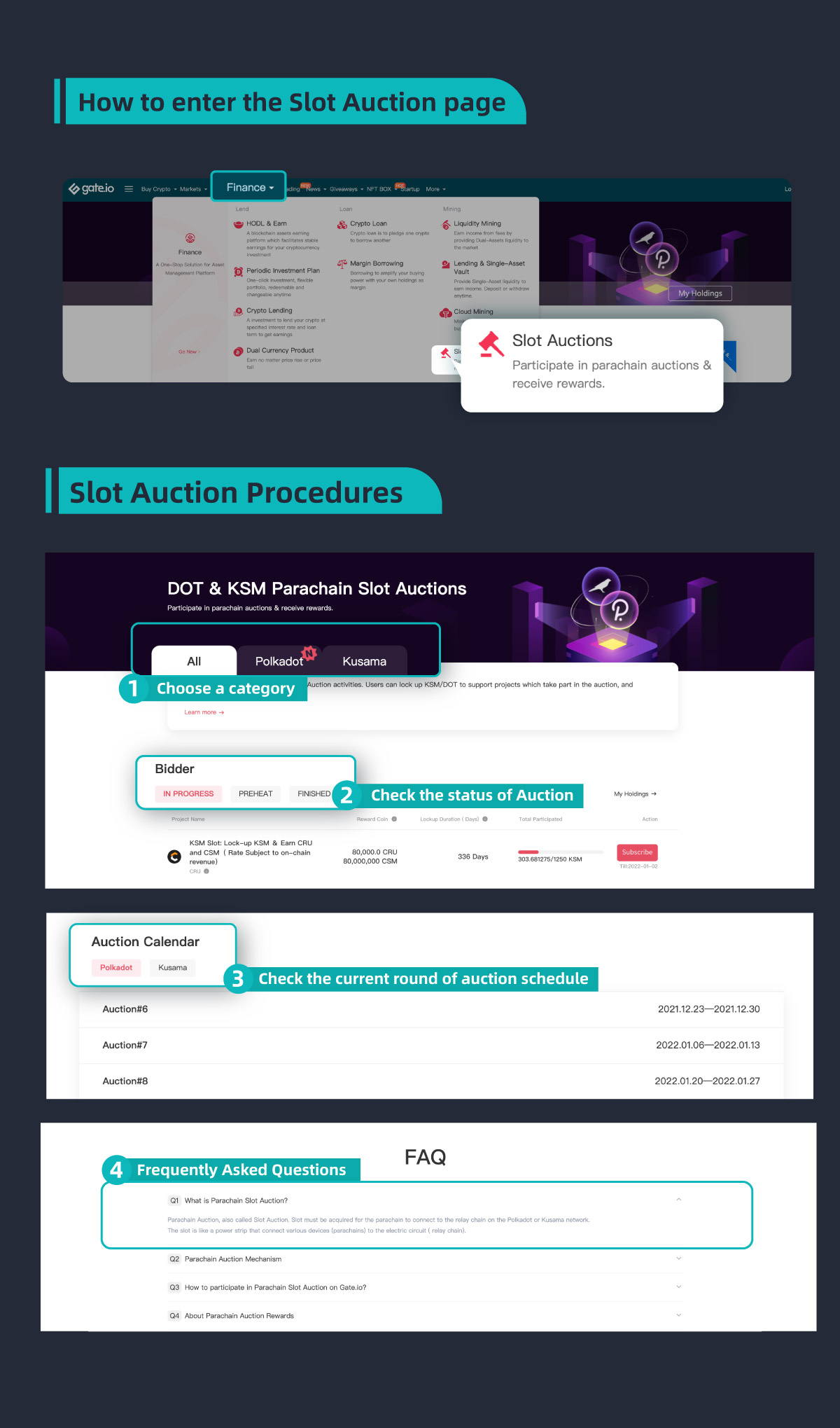 Gate supports the Polkadot Parachain Slot Auction, we had launched the DOT / KSM slot auction page to help users quickly view the Lockup & Earn opportunities at their disposal in terms of the parachain auction. New users can sign up at Gate to participate.