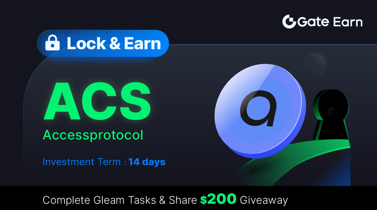 The Lock & Earn ACS will be launched at the "Lock & Earn" of Gate HODL & Earn at 2023-7-17 8:00 UTC. Its interest rate is 150% APR and the investment term is 14 days.