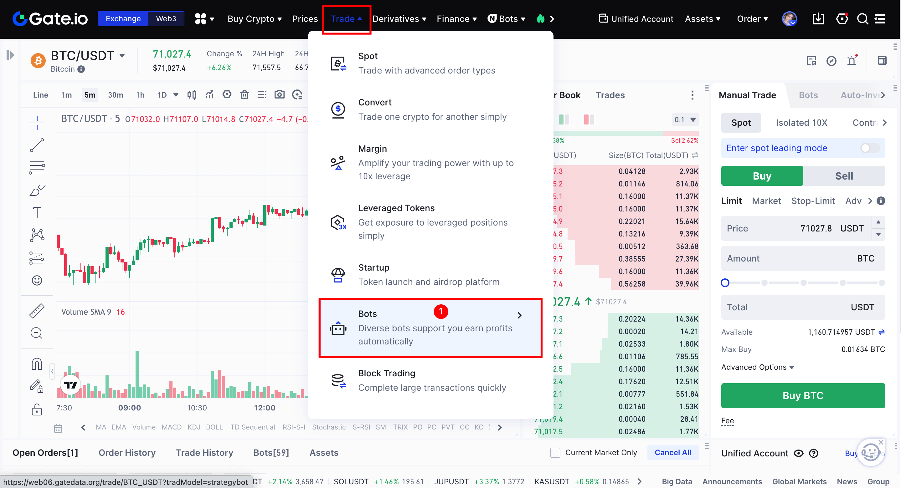 1. Sign in on the Gate website and navigate to [Trading - Trading Robot] to access the Trading Robot's K-line interface.