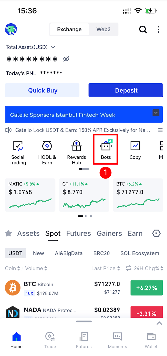 1. Open the Gate APP, and select [Trading Robot] from the home screen to enter its main page.
