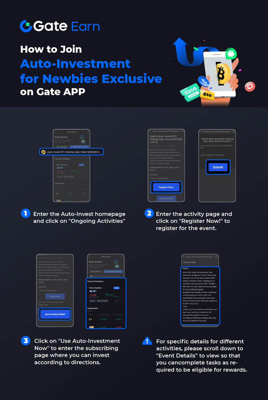 Check out the details of the Gate Auto-Investment for Newbies now. With a minimum investment of just 10 U, you can receive a reward equivalent to 10 U. For every total investment of $500, you will receive one chance to enter a draw. Each draw offers the chance to win between 500 to 5000 USDTEST, VIP and other benefits. Enjoy the pleasure of stable investment!