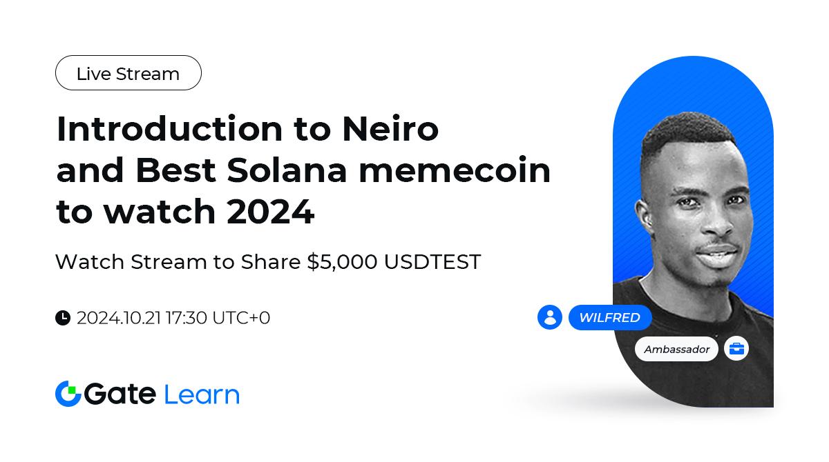 Wilfred _ Gate Learn, our campus ambassador, will be the host and share his insights on Introduction to Neiro and Best Solana memecoin to watch 2024