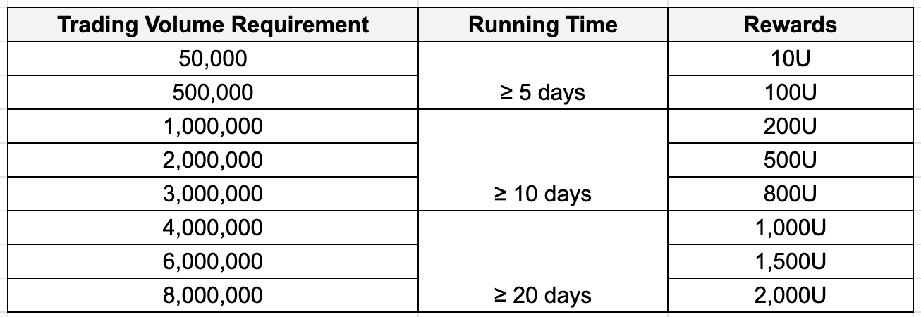 4.The event requires users to maintain a trading volume on Bots over 25,000 USDT;
