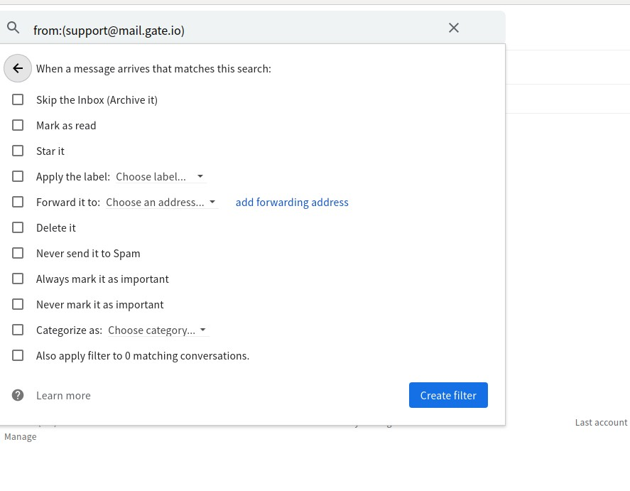 Fill in the input box with “mail.gate.io” or “support@mail.gate.io” and press “Enter” key.