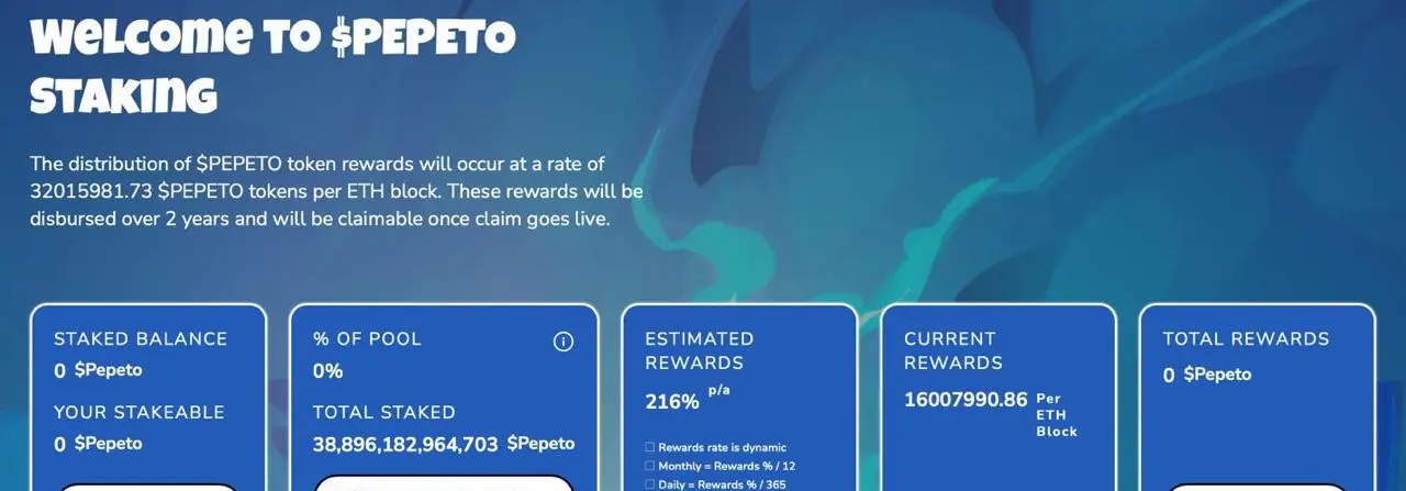 Investors can access Pepeto through the official website by connecting Ethereum-compatible wallets such as MetaMask or Trust Wallet. They can pay either with ETH, USDT, BNB, or with credit/debit cards via Web3Payments integration. Acquired tokens are immediately stakeable to attract 216% per year till official exchange launches.