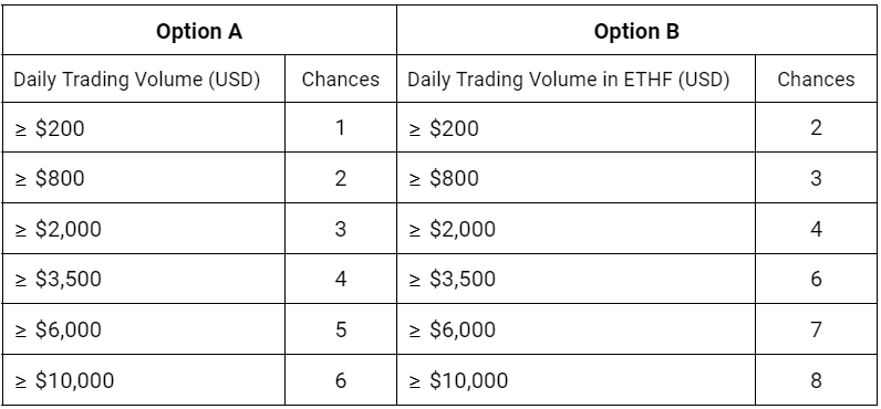 The higher trading volume in either Option A or Option B will be evaluated to offer the chances, which can't be accumulated from both of the two situations.