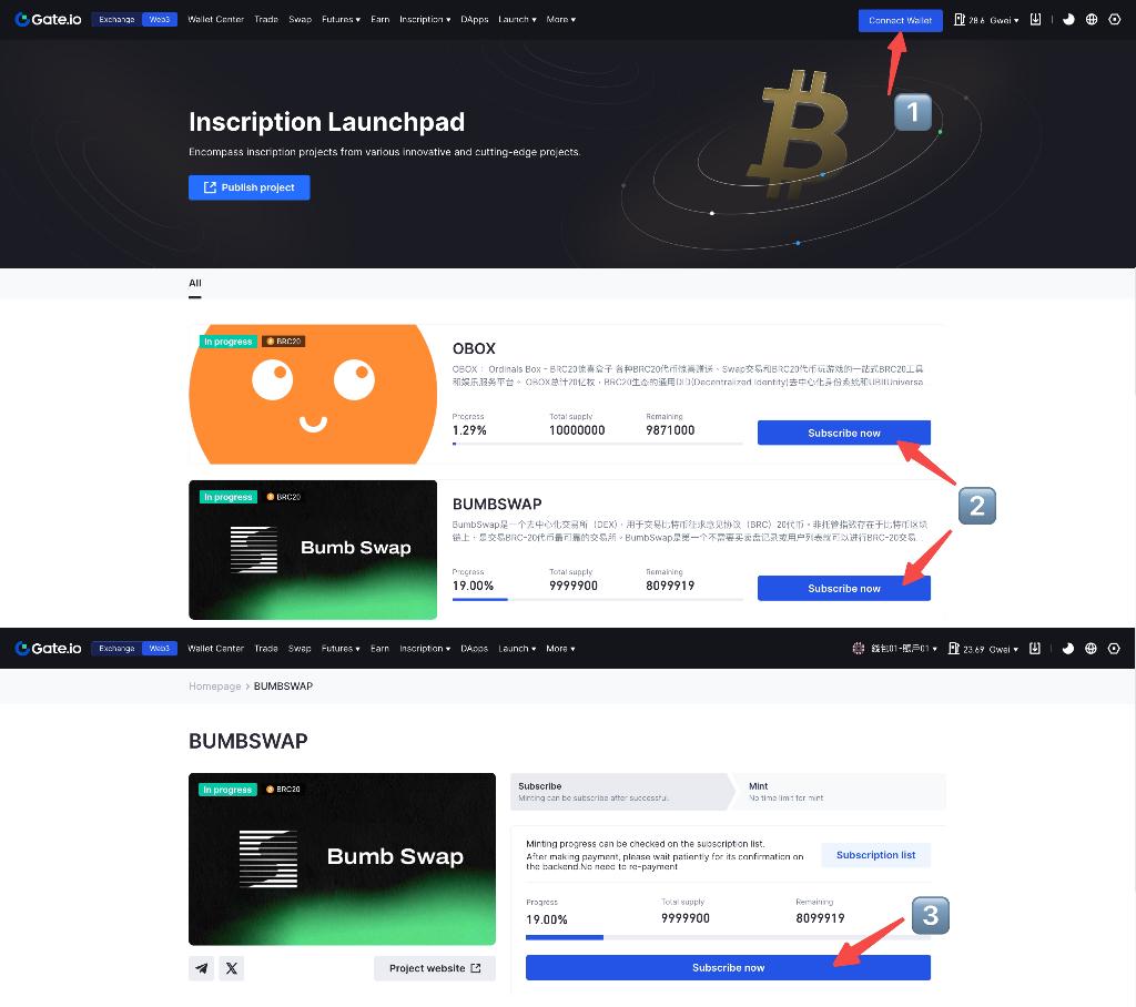 Inscription Launchpad — це інноваційний продукт для екосистеми Inscription, створений Gate Web3. Найважливішою функцією продукту є випуск і заявка на проекти BRC20, зосереджуючись на випуску та підписці на проекти Inscription, що дозволяє користувачам легко брати участь у треку Ordinals та інших популярних проектах в екосистемі. Цього разу працює новий проект BRC20 OBOX, що дозволяє користувачам заявляти про проекти без жодних витрат і карбувати їх після завершення заявки.