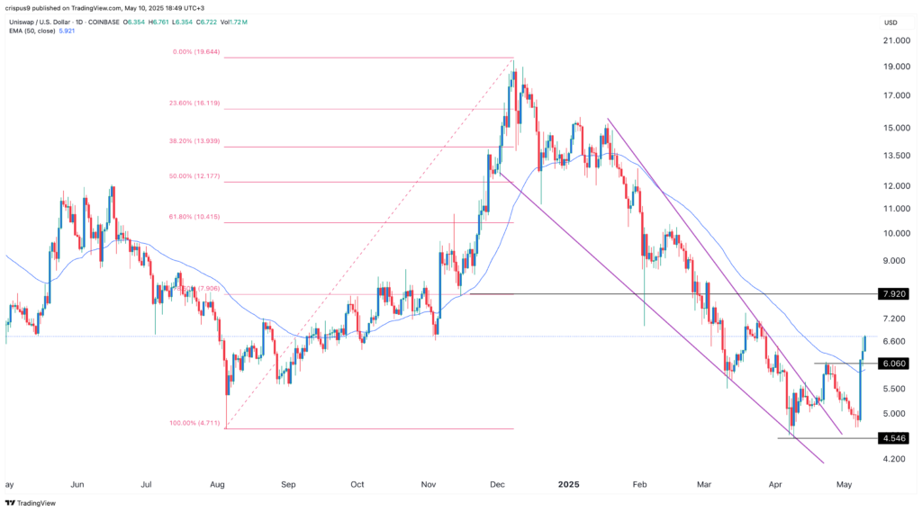 Ціна Uniswap також зросла через постійне зростання Unichain, його мережі другого рівня, яка була запущена кілька місяців тому.