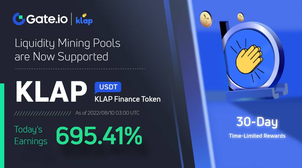 ​Gate thêm phần thưởng giới hạn thời gian 86,670 KLAP cho nhóm khai thác thanh khoản của KLAP, lãi suất năm đạt 695.41%