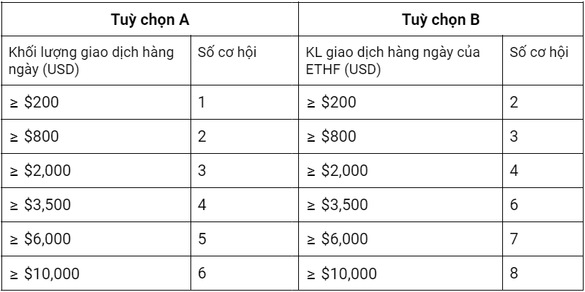 *Lưu ý: Khối lượng giao dịch cao hơn trong hai Tùy chọn A hoặc Tùy chọn B sẽ được đánh giá để mang lại cơ hội, không thể tích lũy từ cả hai tuỳ chọn.