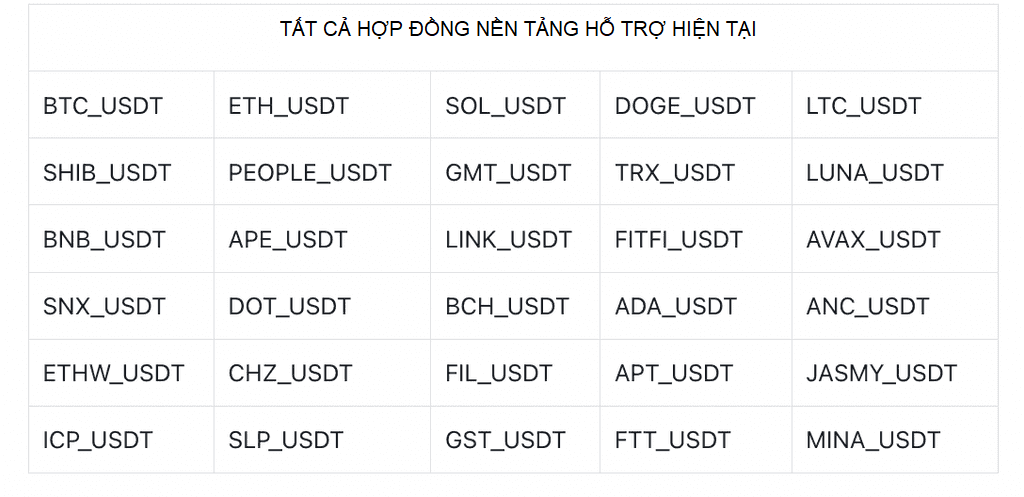 Hiện tại, các loại hợp đồng được hỗ trợ bởi nền tảng copy giao dịch thực tế là:
