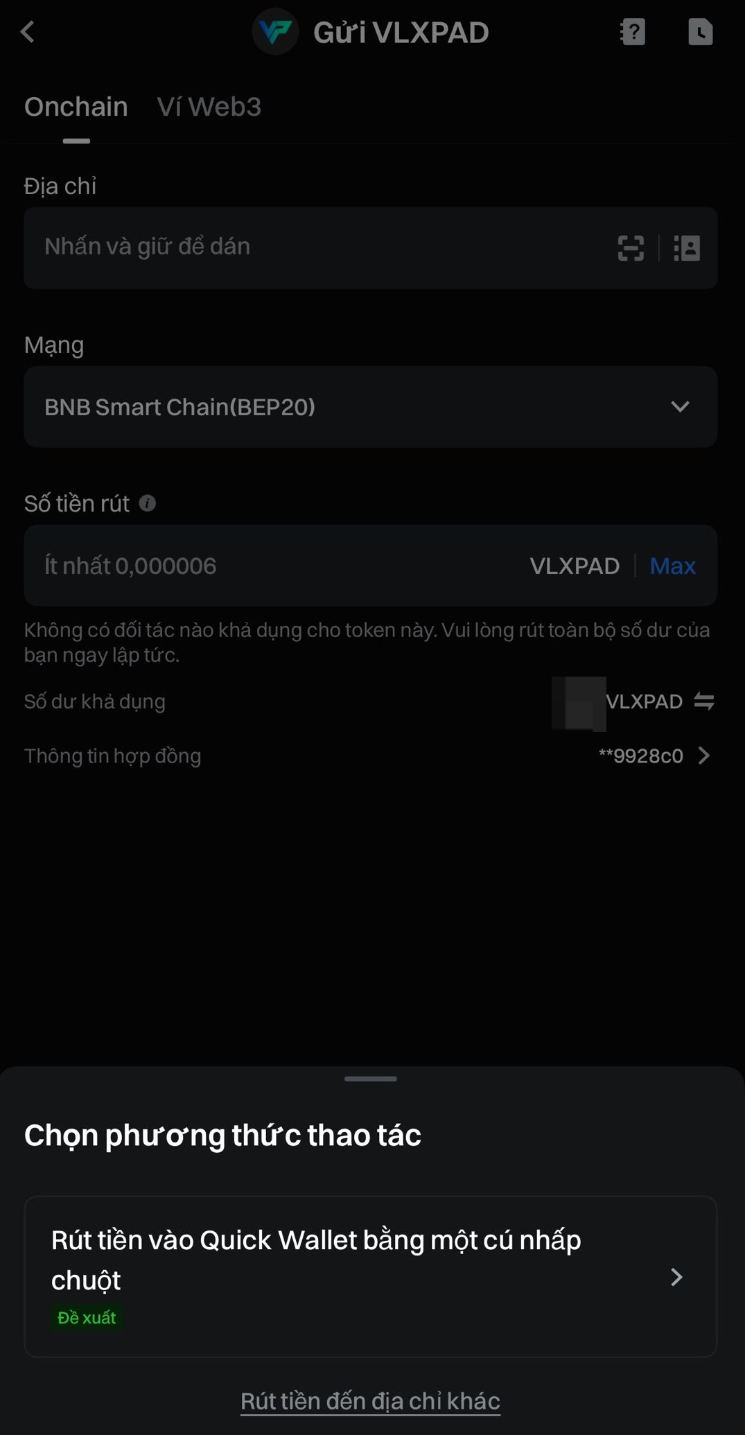 Sau khi rút thành công, bạn có thể xem token đã lưu trữ vĩnh viễn bằng cách chọn Ví Nhanh ở góc trên bên trái của Ví Web3.