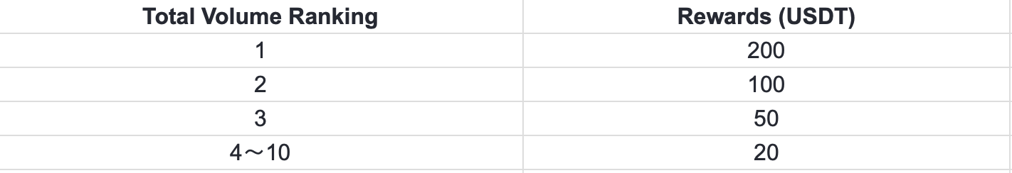 3.Reward 1 requires the total trading volume of all participants to be over 60,000,000 USDT. Otherwise, rewards will be reduced based on actual trading volume.