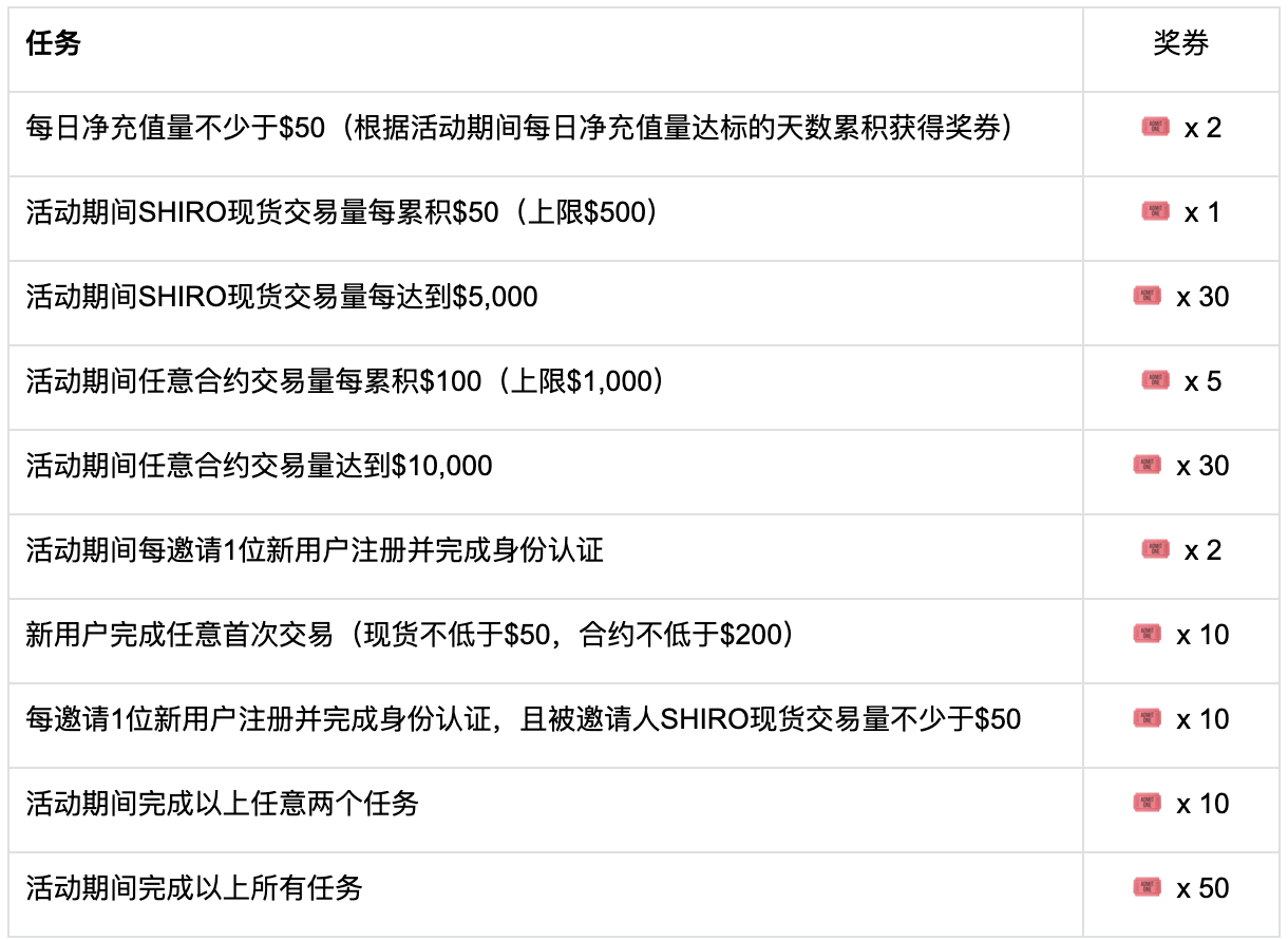 活动期间完成任意任务获得奖券,最终根据活动期间累积的奖券张数,瓜分奖励,总奖池$10,000!