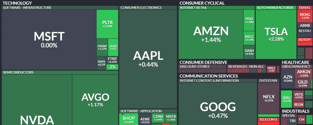 這一天以科技股爲主的反彈趨勢十分明顯。英偉達(Nvidia)、博通(Broadcom)、亞馬遜(Amazon)等與人工智能(AI)相關的股票漲,甲骨文(Oracle)則漲約3%,推動指數漲。