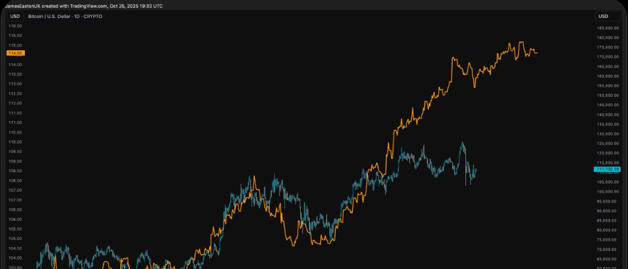 此外,從宏觀層面來看,比特幣與全球流動性指標之間的差異可能會縮小。市場分析師詹姆斯表示:"BTC與全球M2 (貨幣供應)在長期內是同步移動的,而目前存在暫時的差異,"他預測道:"這個差距將再次縮小。"他補充道:“如果流動性恢復的信號得到確認,比特幣可能會回到上升軌道。”