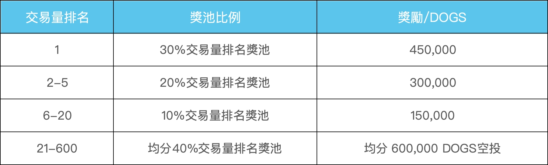 6.本活動獎勵將以DOGS代幣形式發放,領取獎勵需完成帳戶身份認證,統一在活動結束14個工作天內完成自動發放。