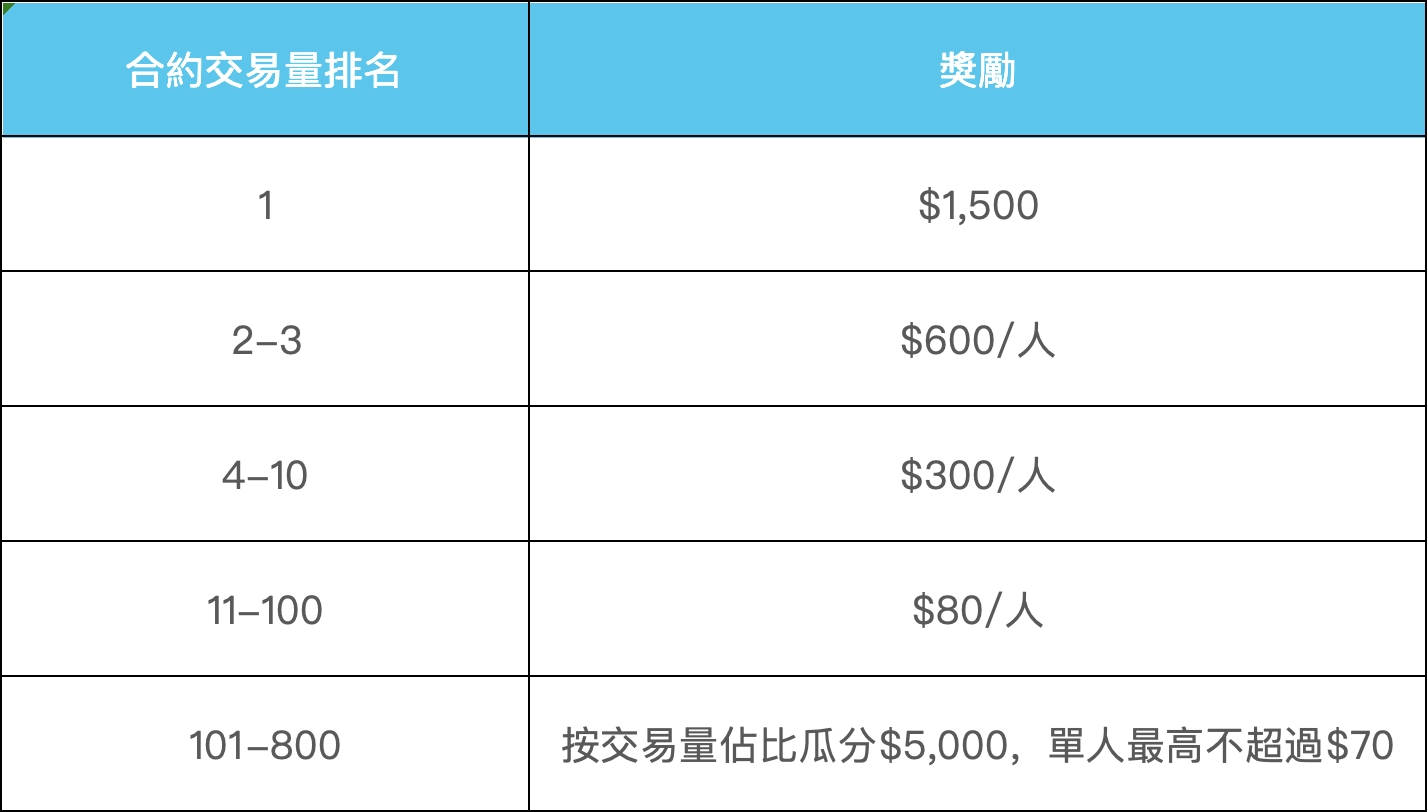 *陽光普照獎:其他交易量達標的合格用戶,瓜分剩餘$3,000獎池!