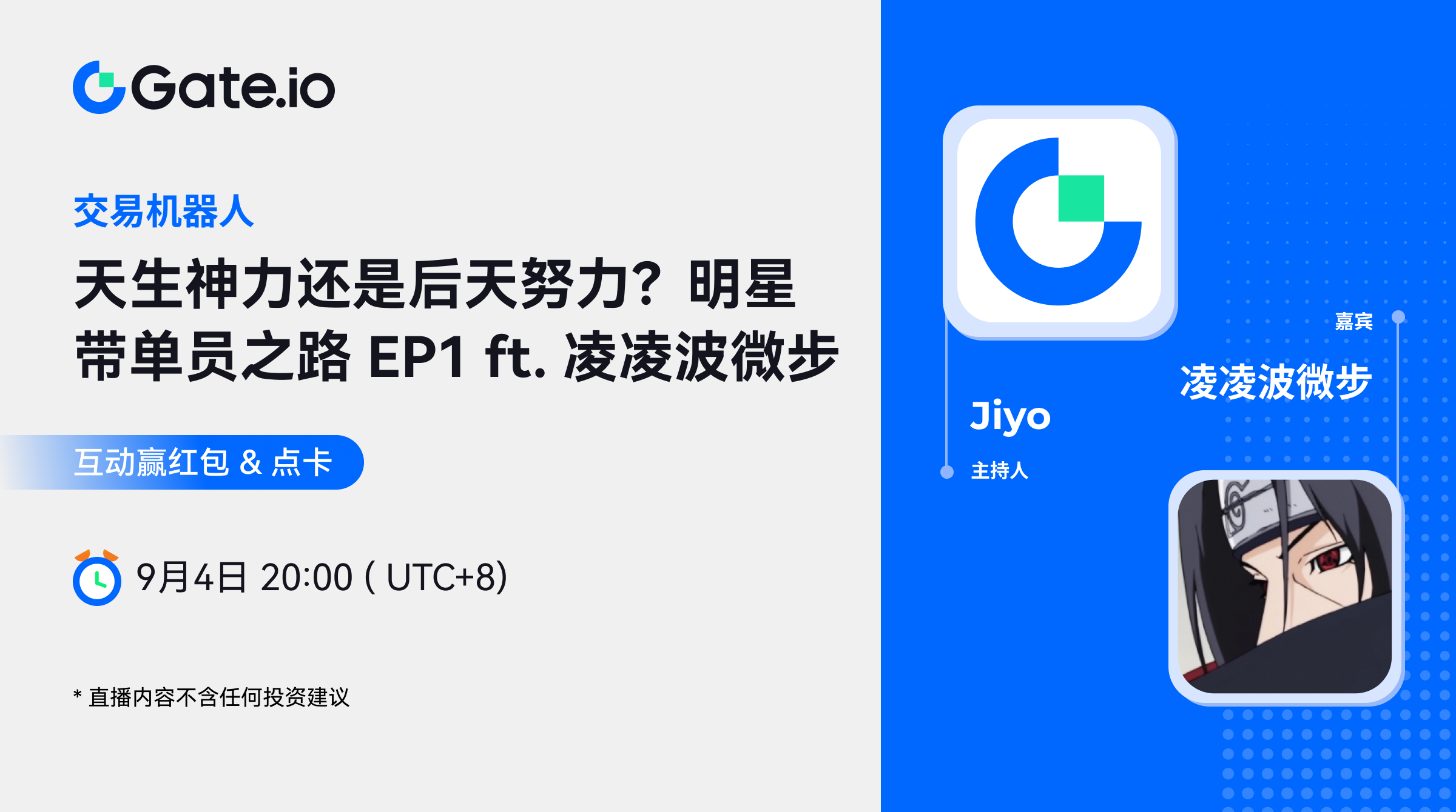 Gate Bots将于9月4日 20:00(UTC+8)举办一场明星带单员 AMA。本次Gate Bots 明星带单员之路邀请到跟单用户收益最高的凌凌波微步老师! 在这次的AMA 中,嘉宾将会分享自己的带单员之路, 交易心态建立, 并结合行情热点分享ˋ自己的做单依据。