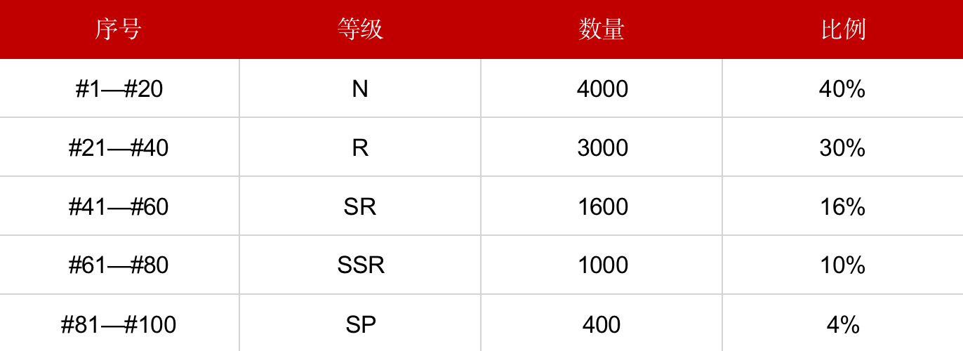 「全职业系列」NFT盲盒由多个不同稀有程度的作品组成。按照稀有程度划分,依次是: SP>SSR>SR>R>N