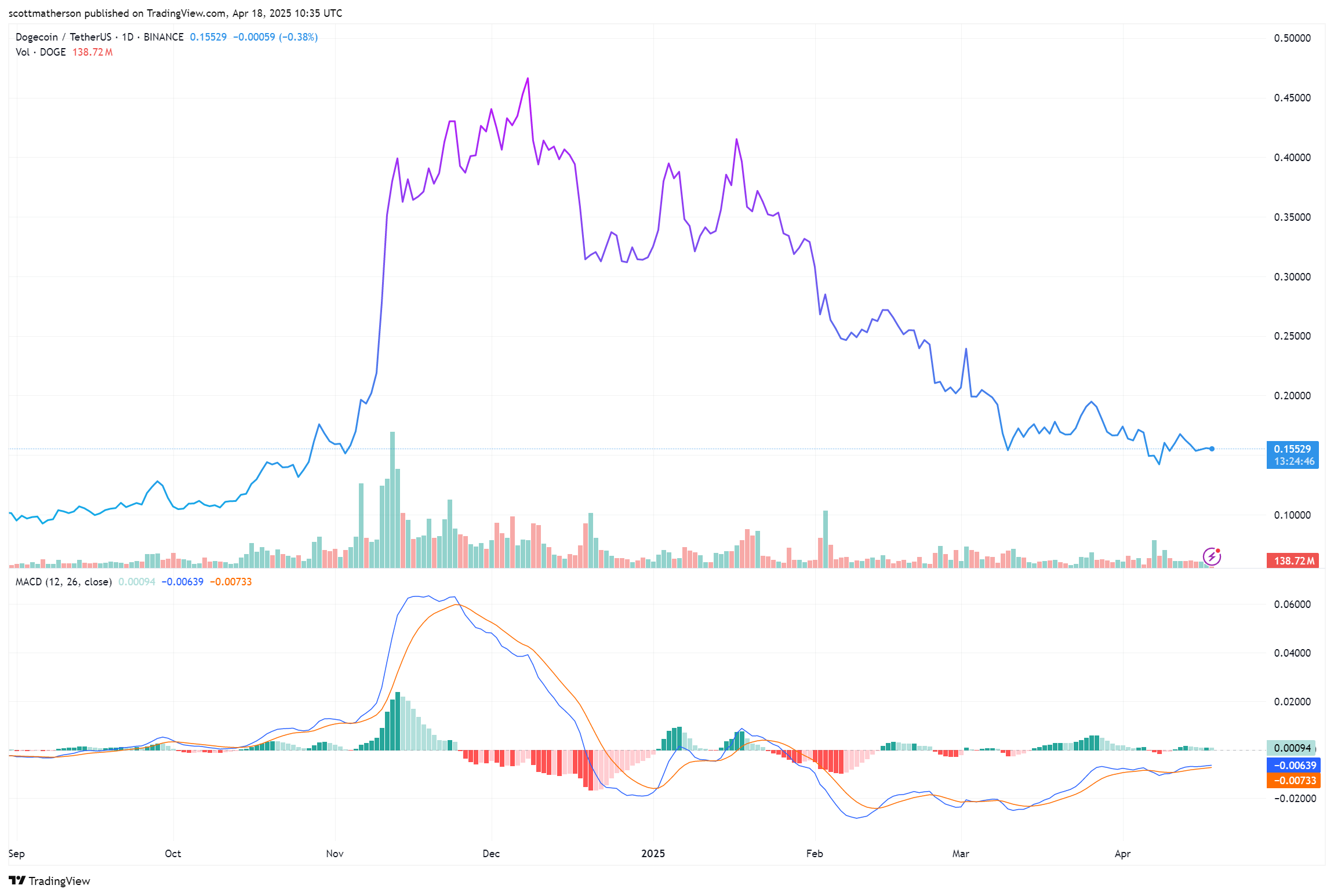 !DogecoinDOGE 在一维图表上的交易价格为 0.15 美元 |资料来源:Tradingview.com上的DOGEUSDT特色图片来自iStock,图表来自 Tradingview.com