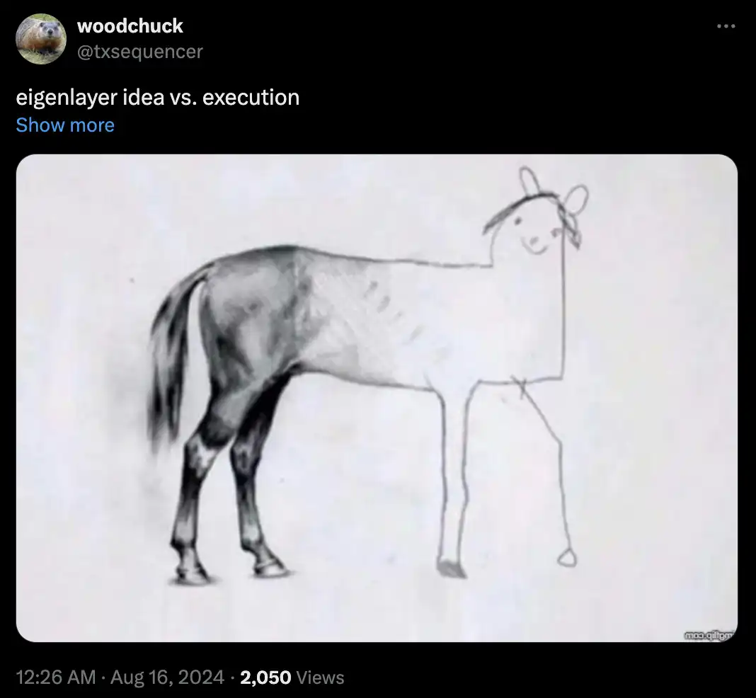 最后,来个梗图吧,EigenLayer 的想法 vs 执行。