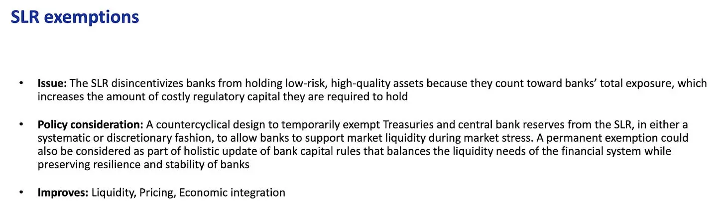如果你还不确定财政部和美联储是否意识到了放宽银行监管的重要性,TBAC 在同一份演示文稿的第 29 张幻灯片中明确指出了这一需求。