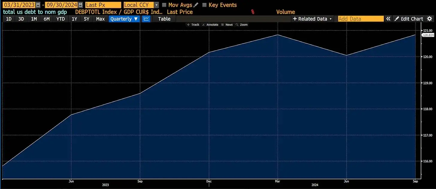 Scott Bassett,被普遍认为是特朗普接替耶伦出任美国财政部长的人选,发表了许多关于他如何“修复”美国的演讲。他的演讲和专栏文章详细阐述了如何执行特朗普的“美国优先计划”,这一计划与中国的发展策略颇为相似(始于20世纪80年代的邓小平时期,并延续至今)。该计划旨在通过政府提供的税收抵免和补贴来推动关键产业(如造船、半导体工厂、汽车制造等)的回流,从而促进名义GDP的增长。符合条件的公司将能获得低息银行贷款。银行将再次积极向这些实际运营的公司提供贷款,因为它们的盈利能力由美国政府保障。随着公司在美国扩展业务,它们需要雇佣美国工人。普通美国人获得更高薪酬的工作意味着消费支出增加。如果特朗普限制来自某些国家的移民,这些效果将更加显著。这些措施刺激了经济活动,政府通过企业利润和个人所得税获得收入。为了支持这些计划,政府赤字需要保持较高水平,财政部通过向银行出售债券筹集资金。由于美联储或立法者暂停了补充杠杆率,银行现在可以重新杠杆化其资产负债表。赢家是普通工人、生产“合格”产品和服务的公司,以及美国政府,其债务与名义 GDP 比率下降。这种政策相当于对穷人的超级量化宽松。