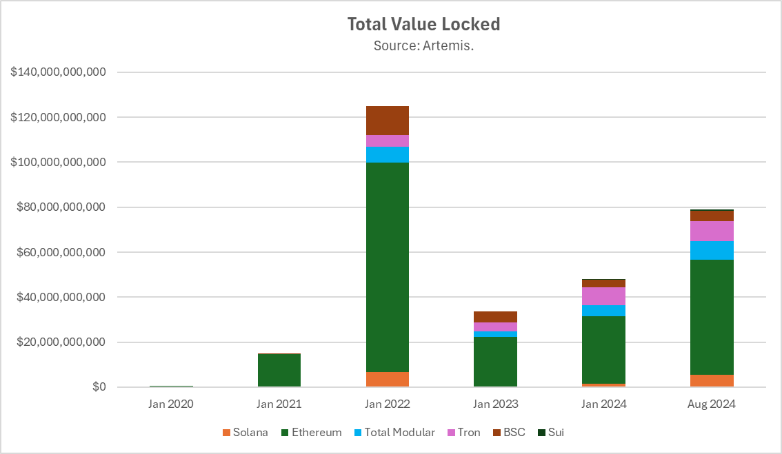 **以太坊的表现不如比特币和 Solana。**批评者认为,这主要是由于以太坊选择了模块化的战略。这是真的吗?